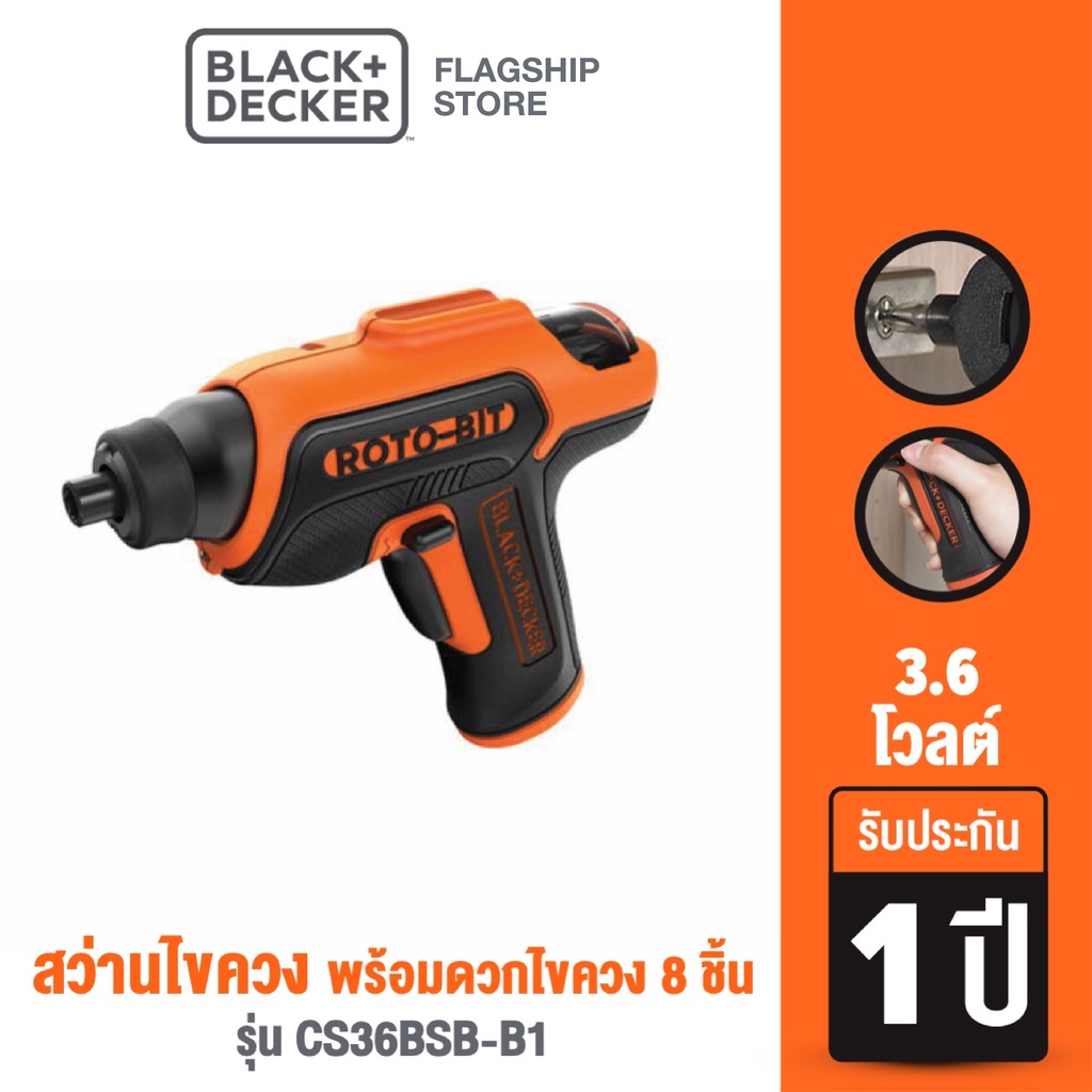Black+Decker สว่านไขควง 3.6โวลต์ พร้อมดอกไขควง 8 ชิ้น รุ่น CS36BSB-B1