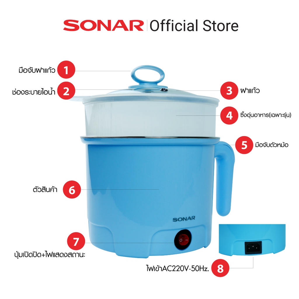 SONAR หม้อไฟฟ้า อเนกประสงค์ electric pot ต้มมาม่า หม้อต้มมาม่า ต้มไข่ รุ่น JK-250S มี 2 สี