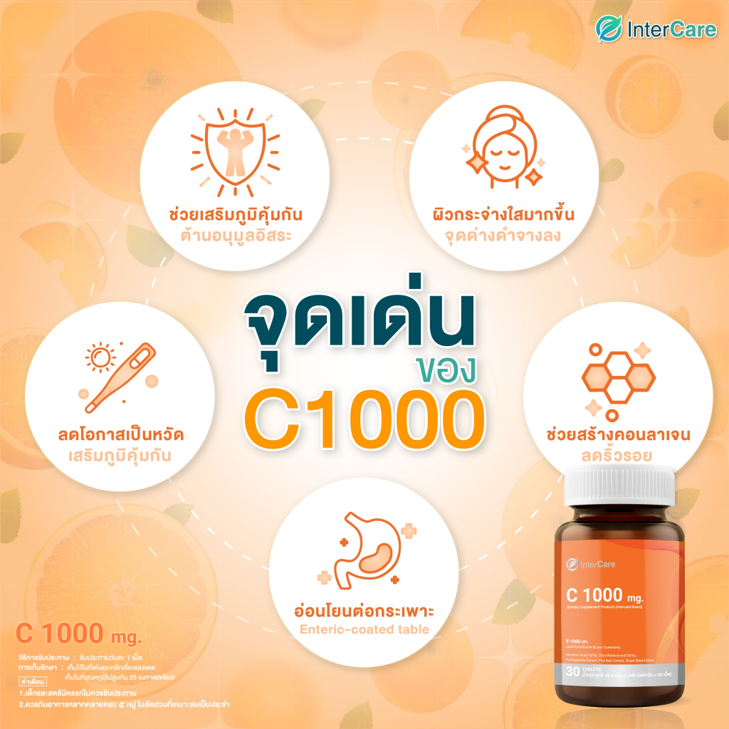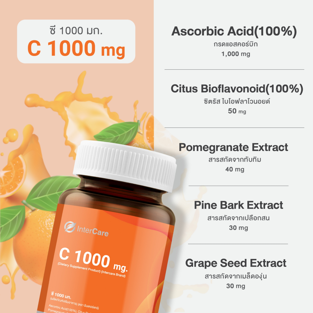 [เสริมภูมิคุ้มกัน] InterCare C1000 mg วิตามินซี 1000 mg และ Zinc plus มัลติวิตามิน ซิงค์ 75 mg