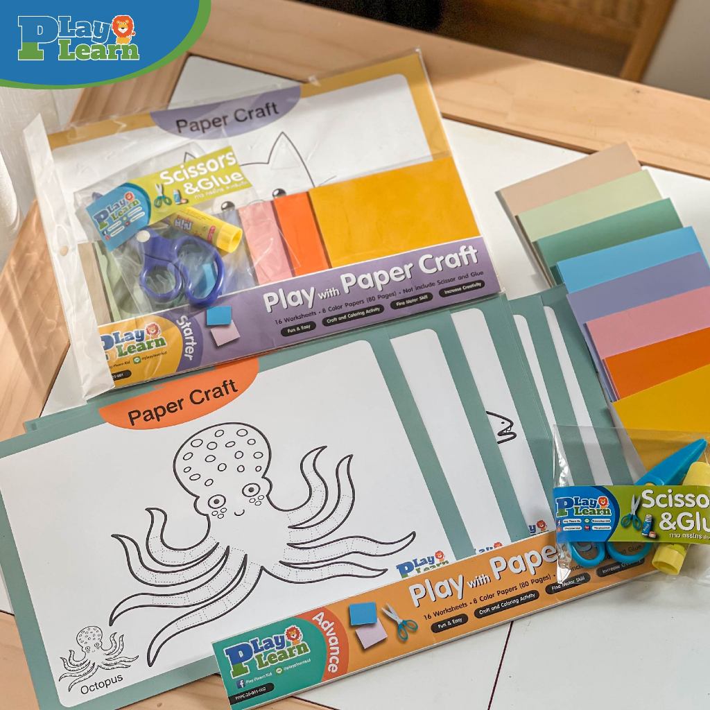 [ไม่รวมกาวกรรไกร] Play Plearn Kid ชุดกระดาษตัดแปะ Paper Craft เหมาะสำหรับเด็ก 2-5 ปีขึ้นไป