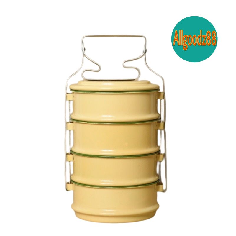 ปิ่นโตเคลือบสีเหลือง ปิ่นโตพระ ปิ่นโตสังกะสี 14 ซ.ม. (4, 5 ชั้น)*สามารถออกใบกำกับภาษีได้ค่ะ