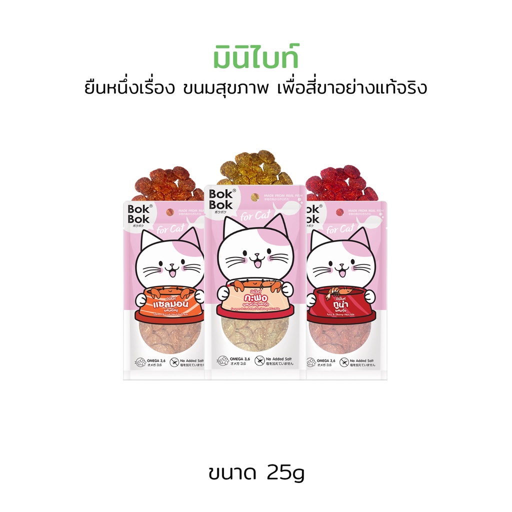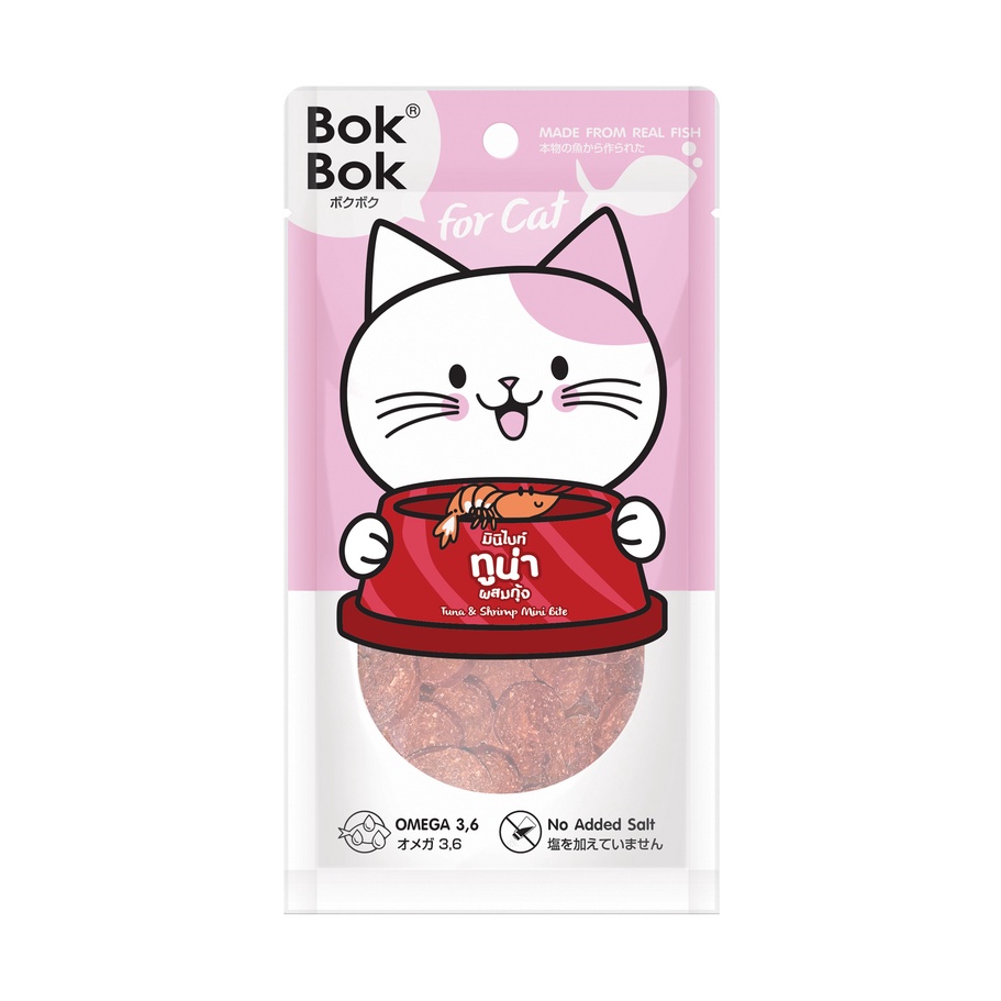 ขนมแมว Bok Bok แมว มินิไบท์ ปลาทูน่าผสมกุ้ง ขนาด 25 กรัม
