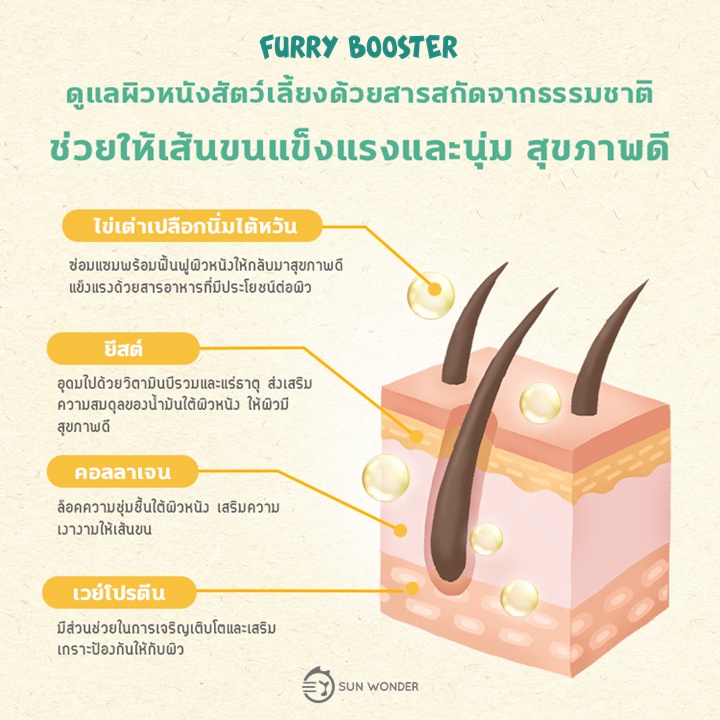 เห็นผลจริง!! อาหารเสริมบำรุงขน สำหรับ สุนัข แมว หนู กระต่าย ขนสวย ขนเงา Furry Booster by Sun Wonder