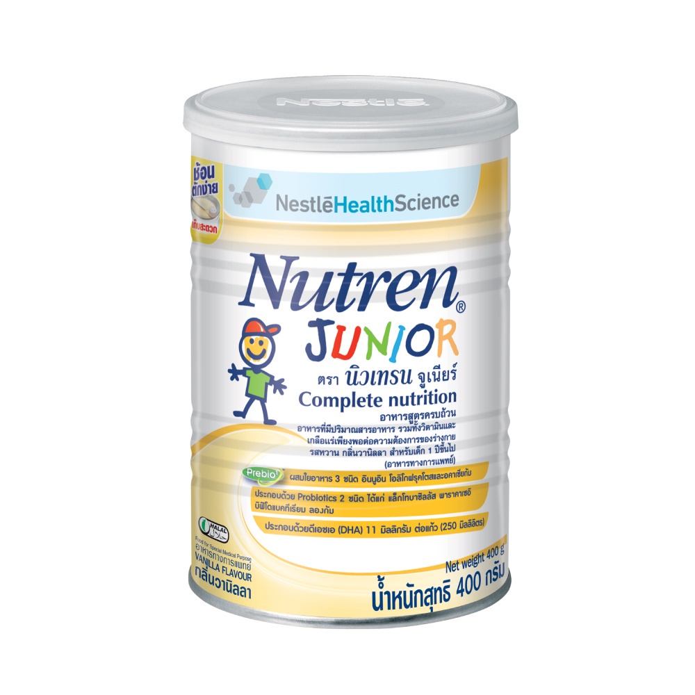NUTREN Junior นิวเทรน จูเนียร์ อาหารเสริมทางการแพทย์มีเวย์โปรตีน สำหรับเด็ก กระป๋อง 400 กรัม