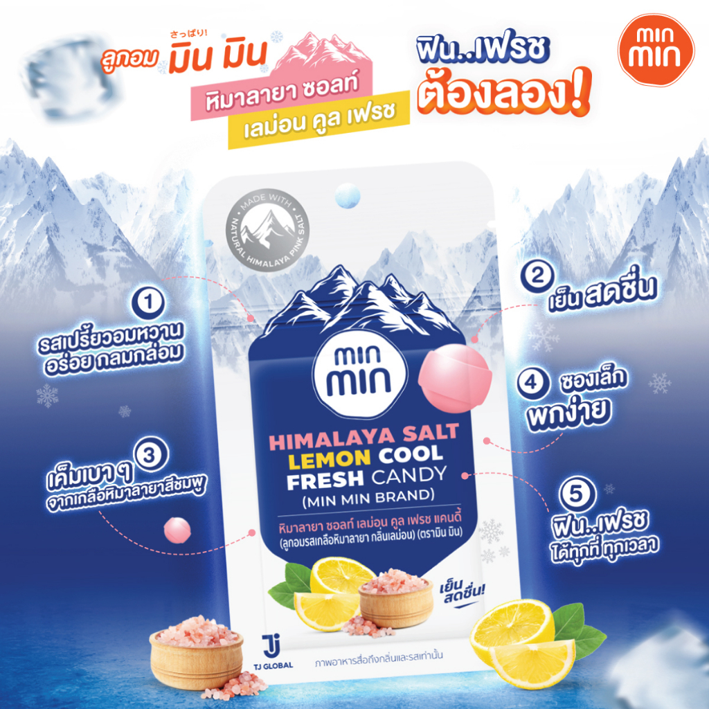 MIN MIN Himalaya Salt Lemon ลูกอมเกลือหิมาลายา กลิ่นเลม่อน (1 กล่อง บรรจุ 12 ซอง)