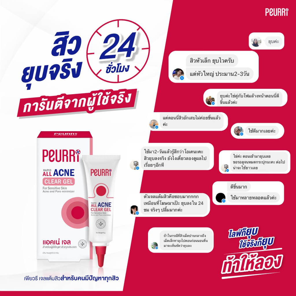 [เซ็ตลดสิวไม่ทิ้งรอย] PEURRI By Puricas Acne Cleanser 100ml + Anti Acne Gel 8g + Puricas Scar Gel 8 g.