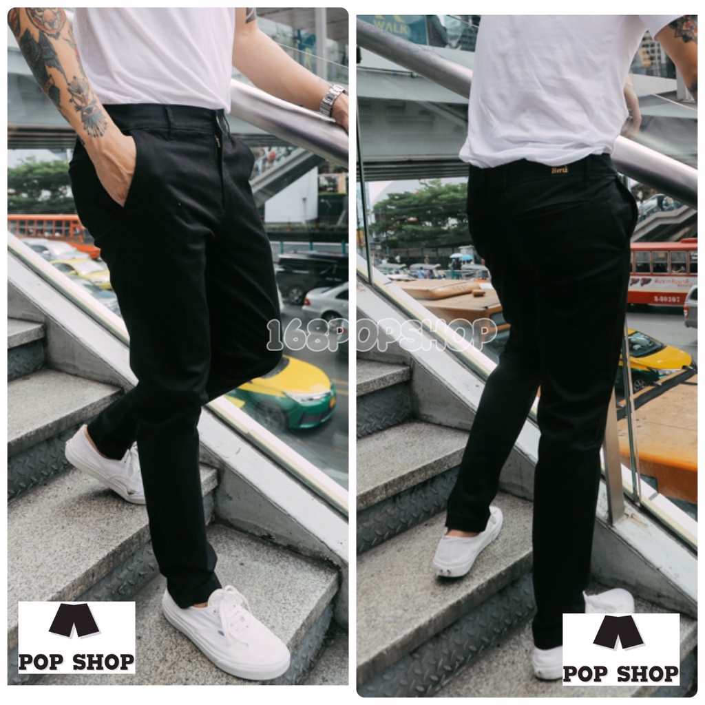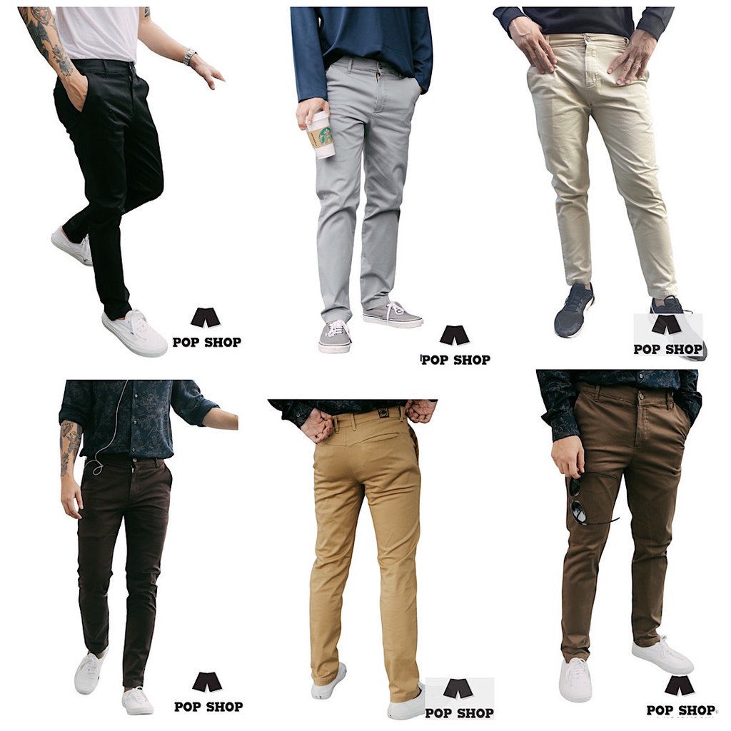 กางเกงขายาวสแลคชิโน่ ผ้ายืด ทรงกระบอกเล็ก Slim Fit ซิปYKK