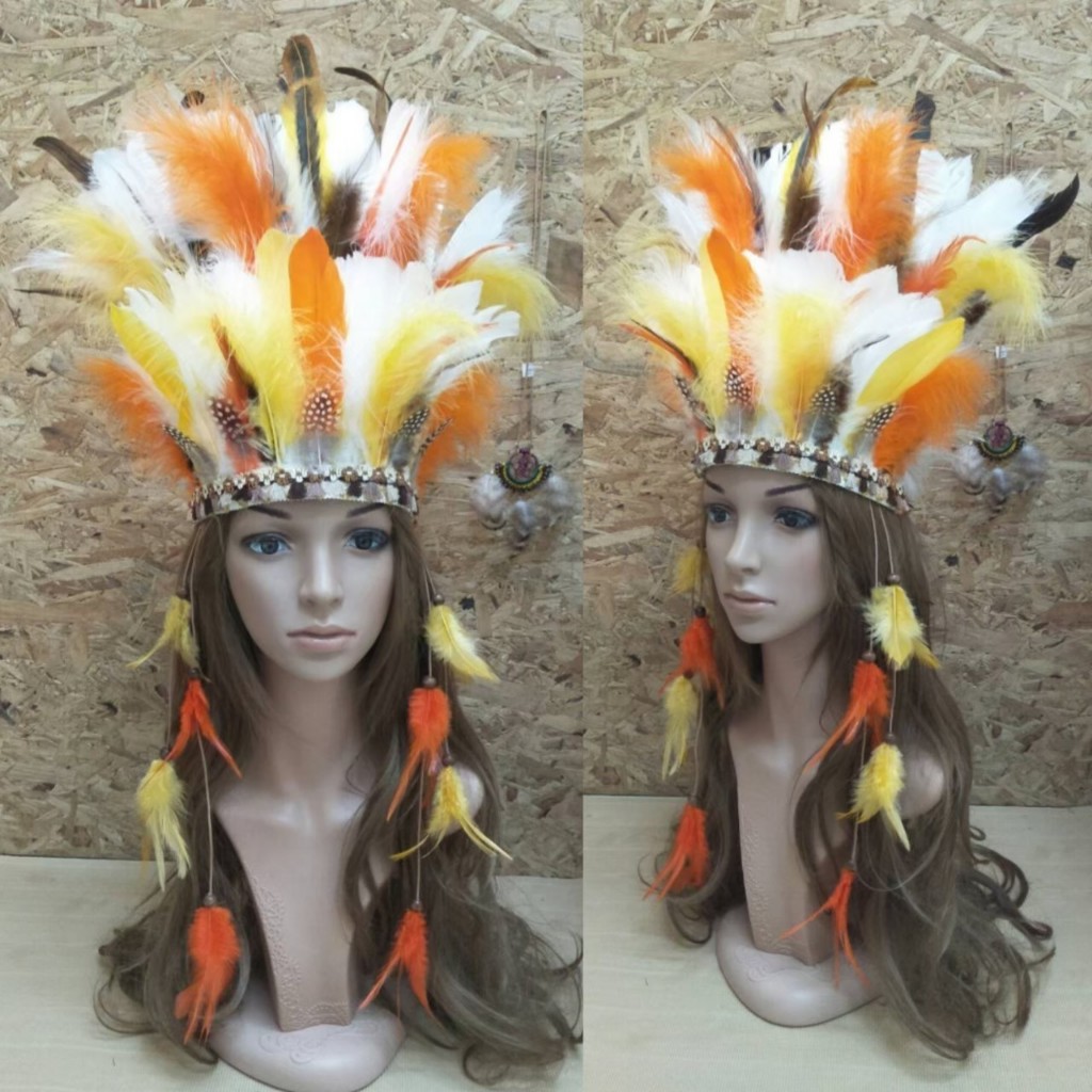 คาดผมโบฮีเมี่ยน คาดผมอินเดียแดง ทำจากขนนก แต่งขนนกมิ้ง 2 ชั้นมีหลายสี ความสูงประมาน 29-30 เซน พร้อมส่ง