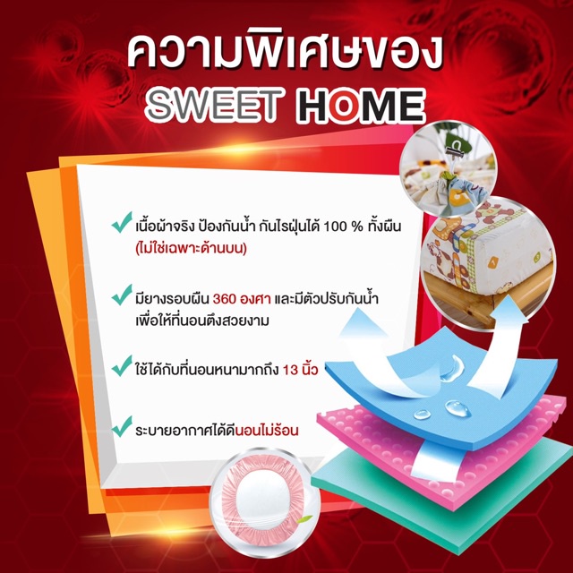 [ออกใบกำกับภาษีได้] (รุ่น01)SWEET HOME กันน้ำ100% ผ้าเนื้อดี(ผ้าจริง) ผ้าปูกันน้ำ กันไรฝุ่น กันฉี่