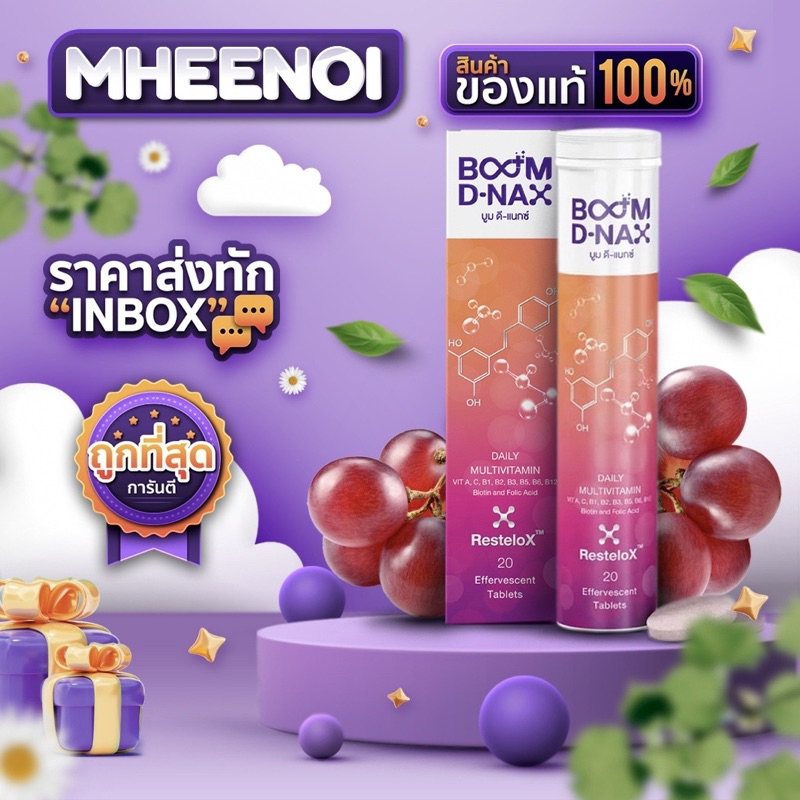 แท้ 100% 📌 บูมดีแนกซ์ Boom D-nax วิตามินเม็ดฟู่ ชะลอวัย วิตสมินรวม รส Mix berry