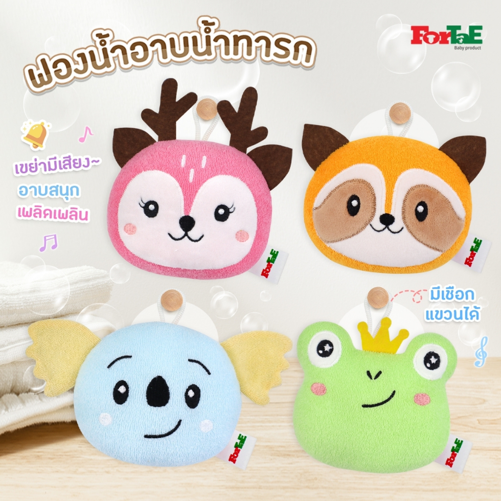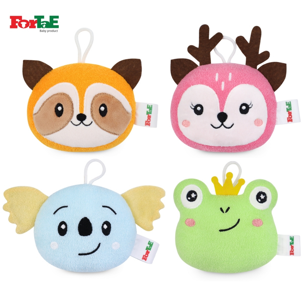 Fortae baby ฟองน้ำอาบน้ำทารกหนานุ่มหุ้มผ้าขนหนู มีเสียงกระดิ่ง พร้อมที่แขวน