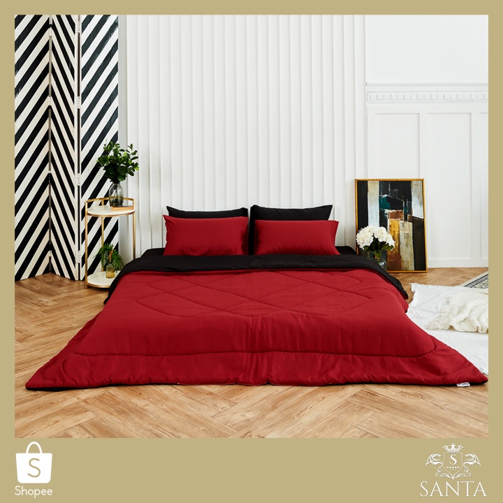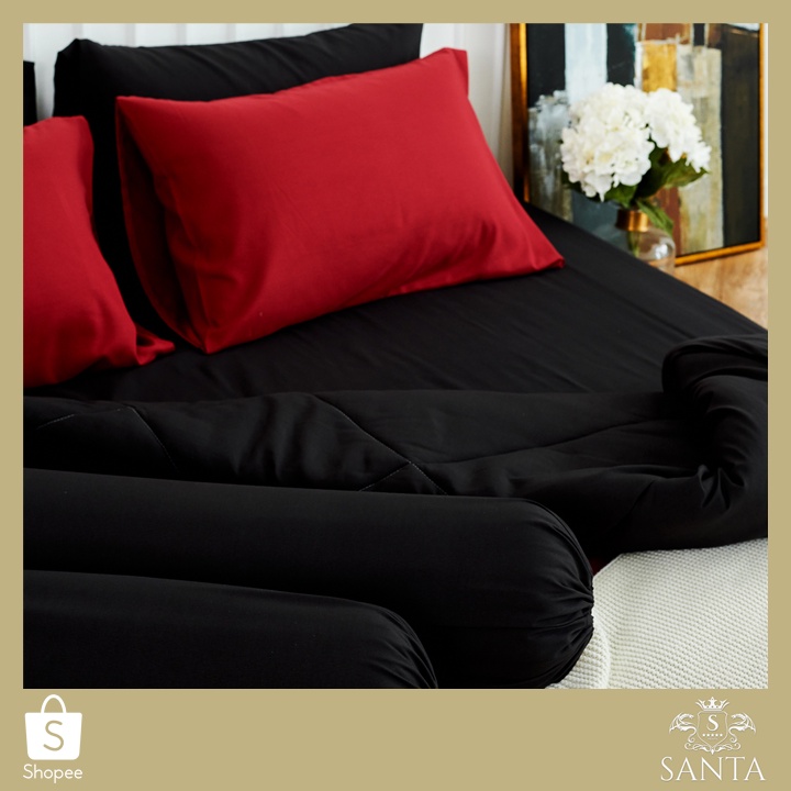 SANTA ชุด ผ้าปูที่นอน ผ้าห่ม ผ้านวม สีดำ สีเเดง