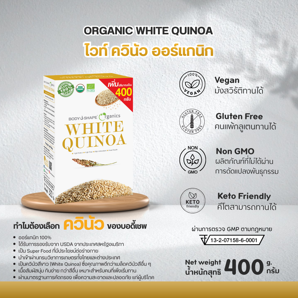 Body Shape Organics WHITE QUINOA 400 กรัม ข้าวควินัวขาว อิ่มท้อง คุมหิว โปรตีนสูง