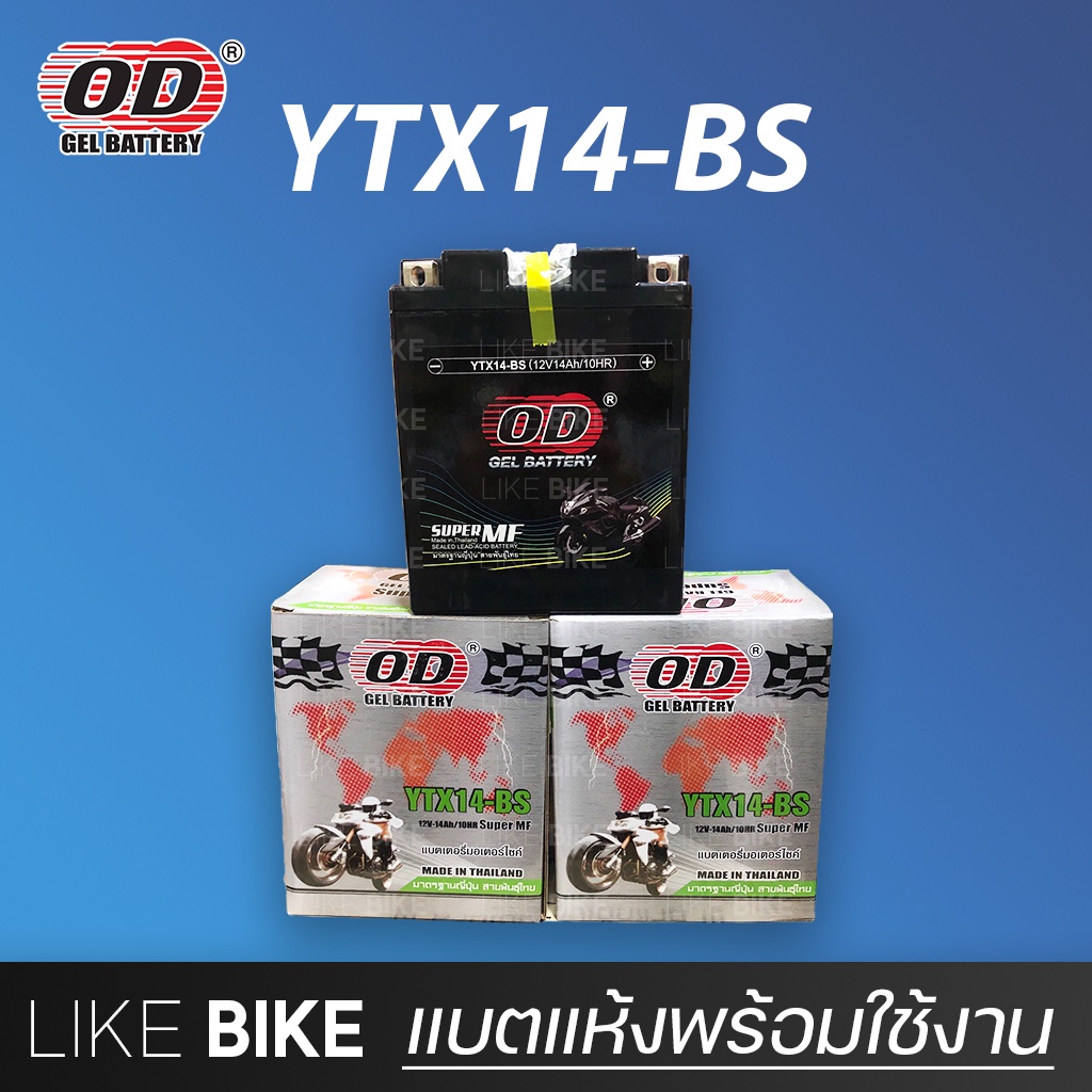 **ลอตใหม่ล่าสุด** OD YTX14-BS (12V 14Ah) แบตเตอรี่มอเตอร์ไซค์ แบตเตอรี่แห้ง