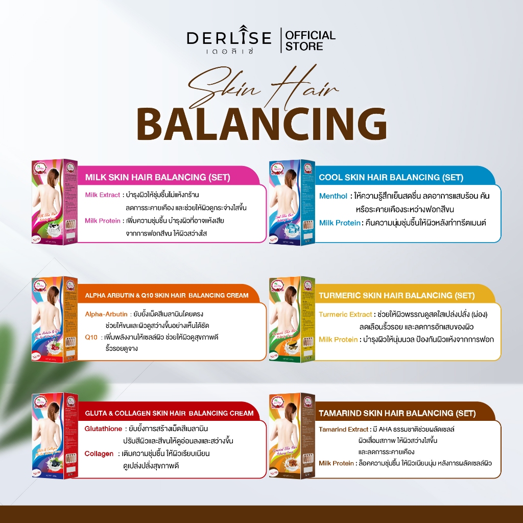 ครีมเปลี่ยนสีขน เปลี่ยนสีผิว Derlise มี 6 สูตร ขนาด 160g.