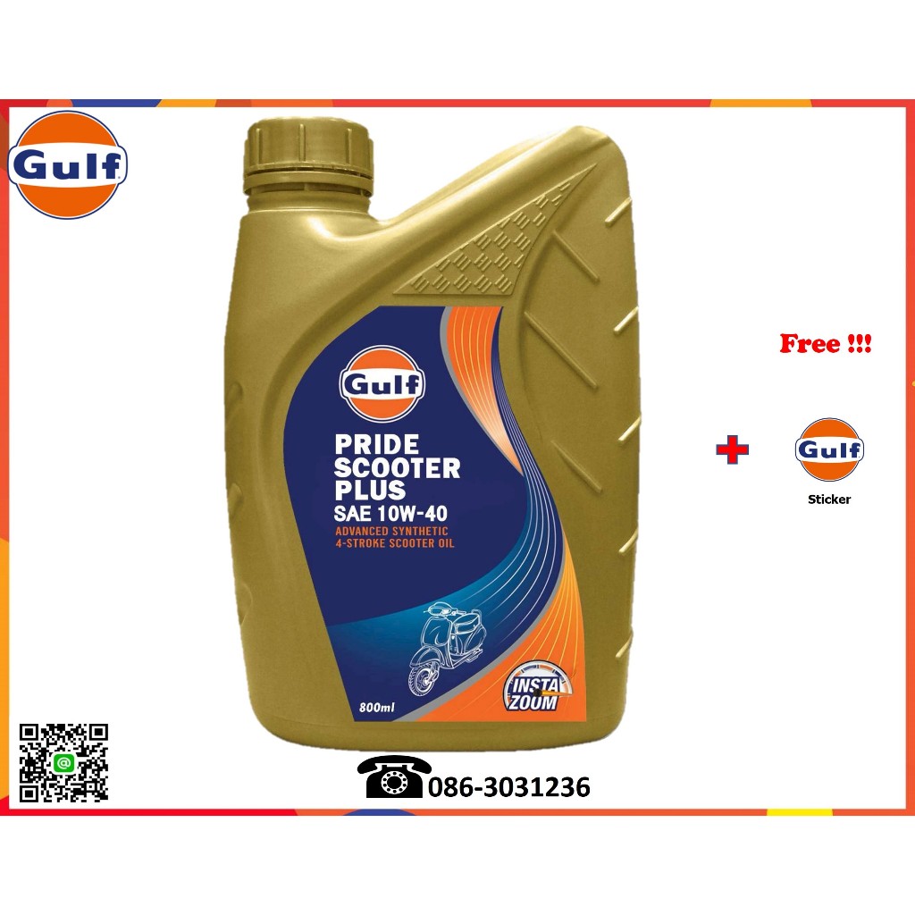 Gulf น้ำมันเครื่องมอเตอร์ไซค์ (Pride Scooter Plus) 10W-30, 10W-40 800ml.