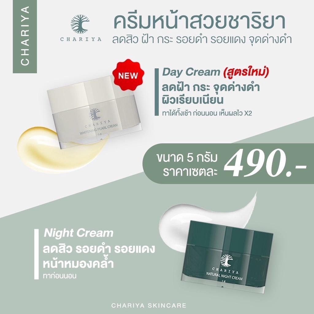ชาริยาสกินแคร์ ครีมชาริยา เดย์ครีม ไนท์ครีม บำรุง หน้าขาวใส ลดสิว ลดรอยสิว ฝ้ากระ คนท้องใช้ได้