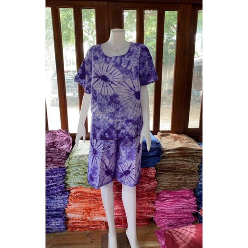 มัดย้อม (โค๊ดส่งฟรี)ชุดมัดย้อม ชุดแขนสั้น ราคาถูกผ้านิ่ม ใส่สบาย