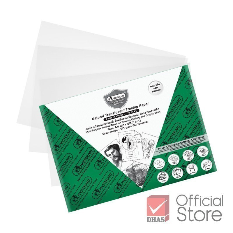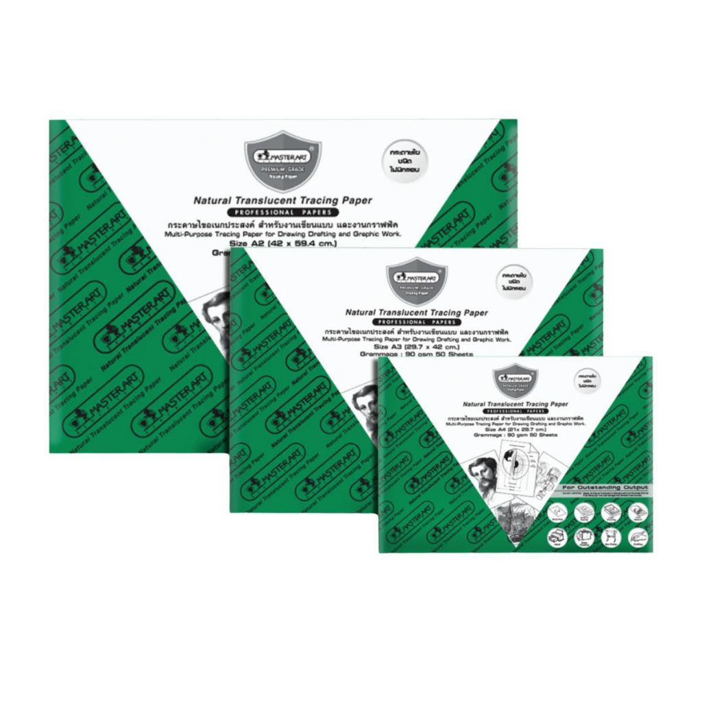 Master Art กระดาษไข หนา 90 แกรม ชนิดไม่มีกรอบ สำหรับงานเขียนแบบ – จำนวน 1 แพ็ค (50 แผ่น)
