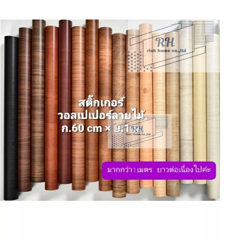 วอลเปเปอร์ลายไม้ สติ๊กเกอร์ลายไม้กว้าง 60 เซน ยาว 3 เมตร และ 5 เมตร เท็กเจอร์ หนา มีกาวในตัว