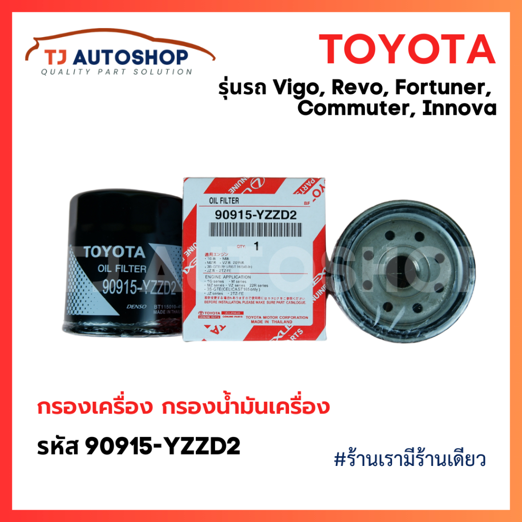 TOYOTA กรองเครื่อง VIGO REVO INNOVA FORTUNER โตโยต้า ไส้กรองน้ำมันเครื่อง เบอร์แท้ 90915-YZZD2