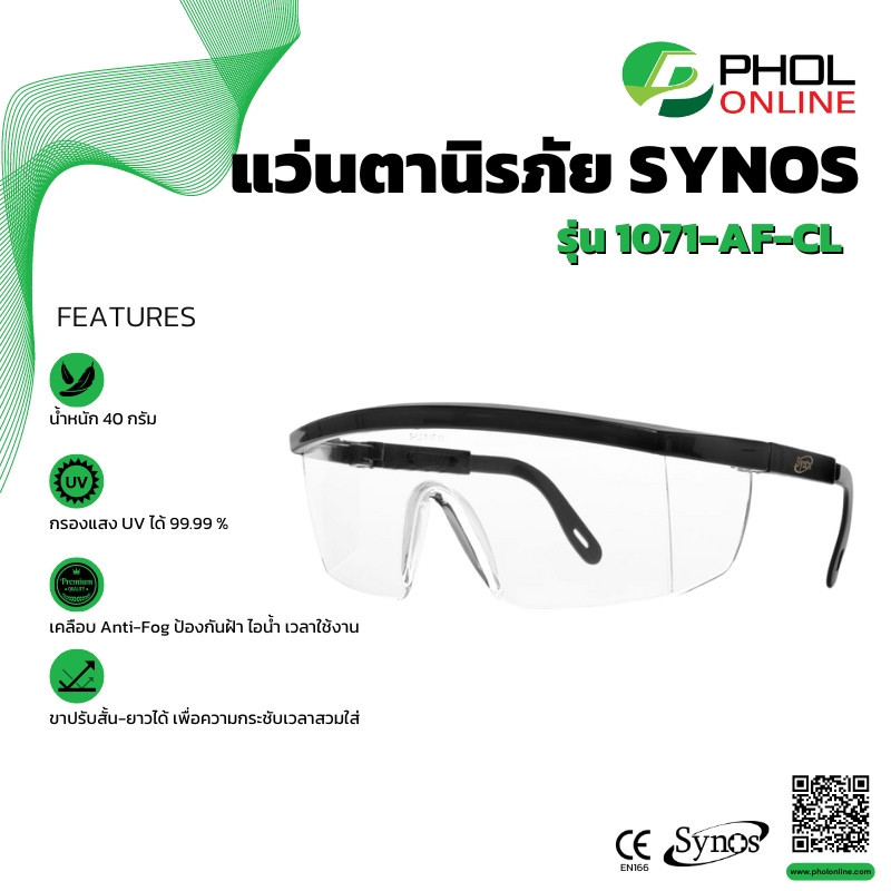 แว่นตานิรภัย SYNOS รุ่น 1071-AF-CL เลนส์ใส เคลือบ ANTI-FOG