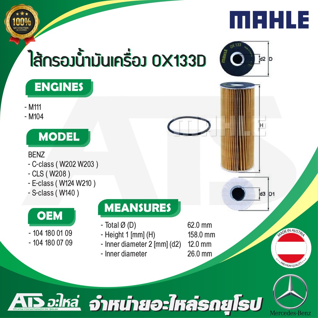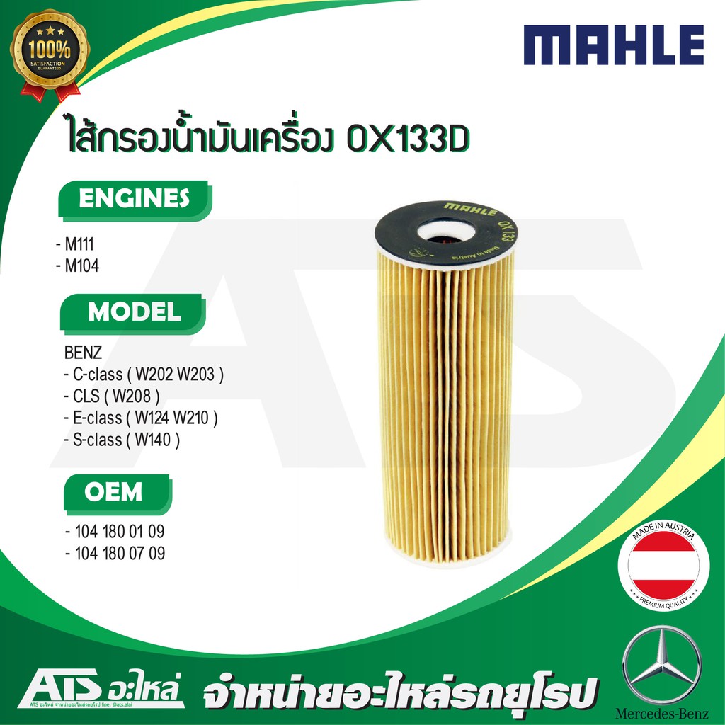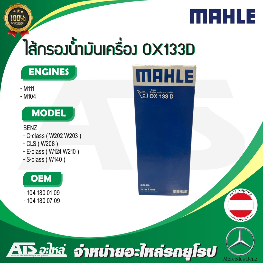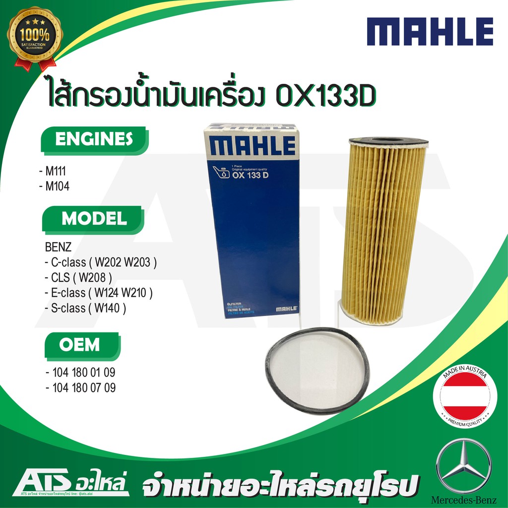 BENZ กรองเครื่อง Mahle OX133D เครื่อง M111 M104 รุ่น W124 W202 W203 W208 W210 W140 l MANN HU727/1X