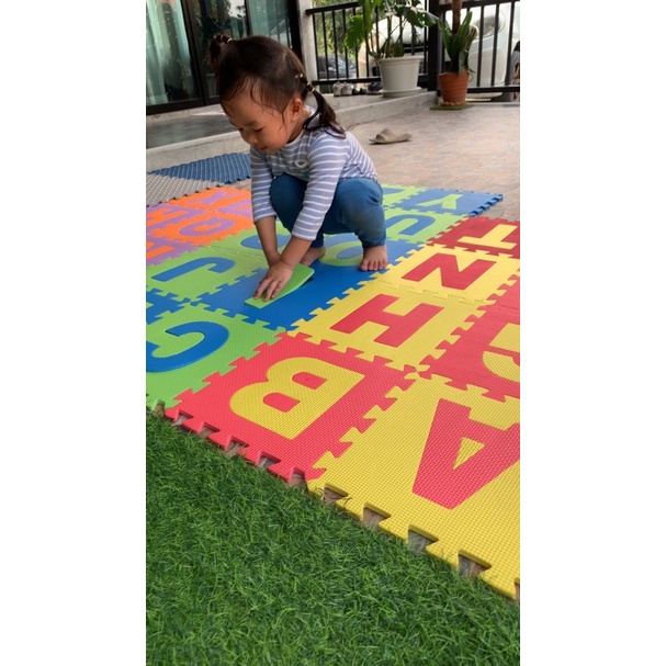 [มีส่งด่วน] HelloMom แผ่นรองคลานจิ๊กซอว์ ขนาด 30 x30 cm EVA Pazzle mat ลาย ABC กขค สัตว์ 0-9 ตัวเลข