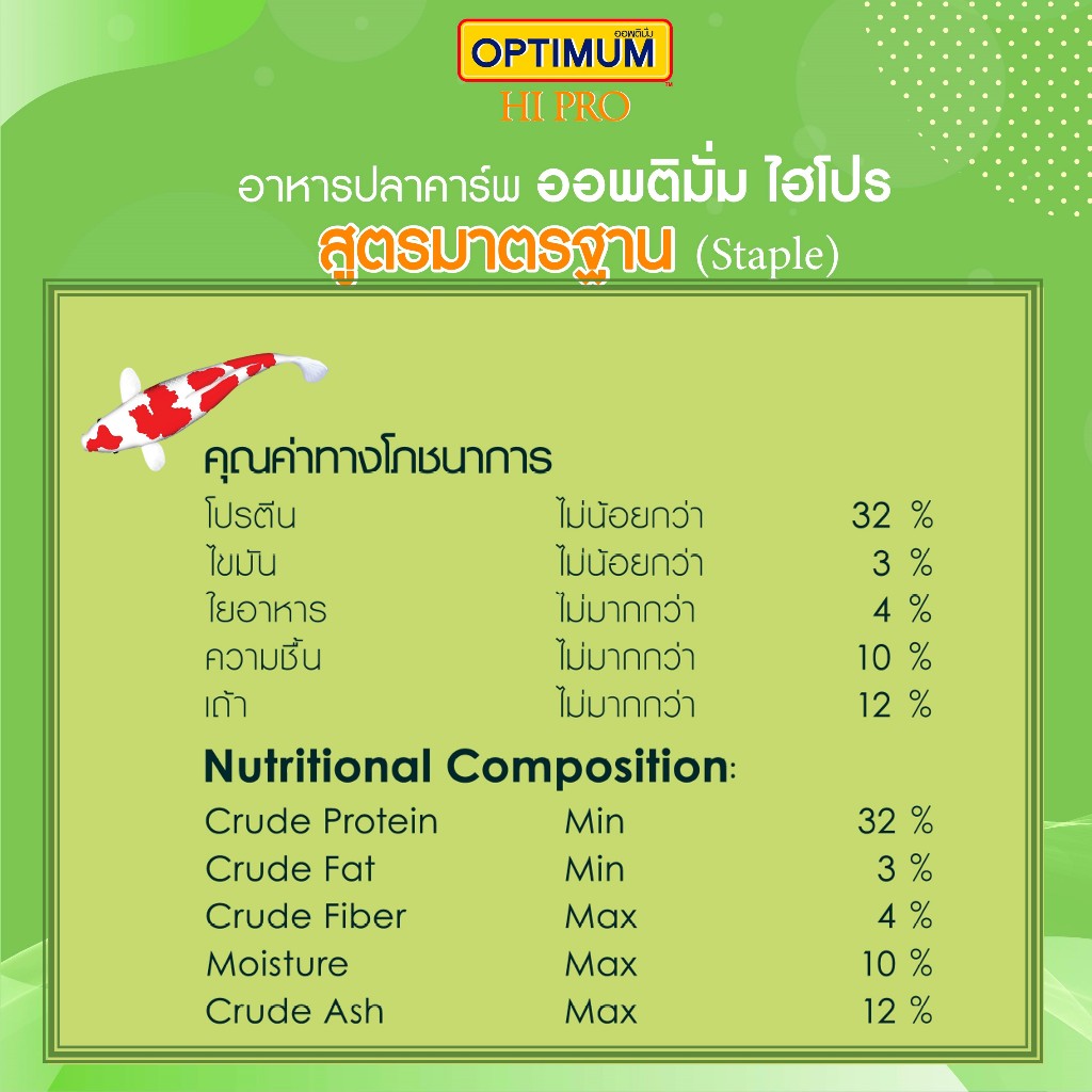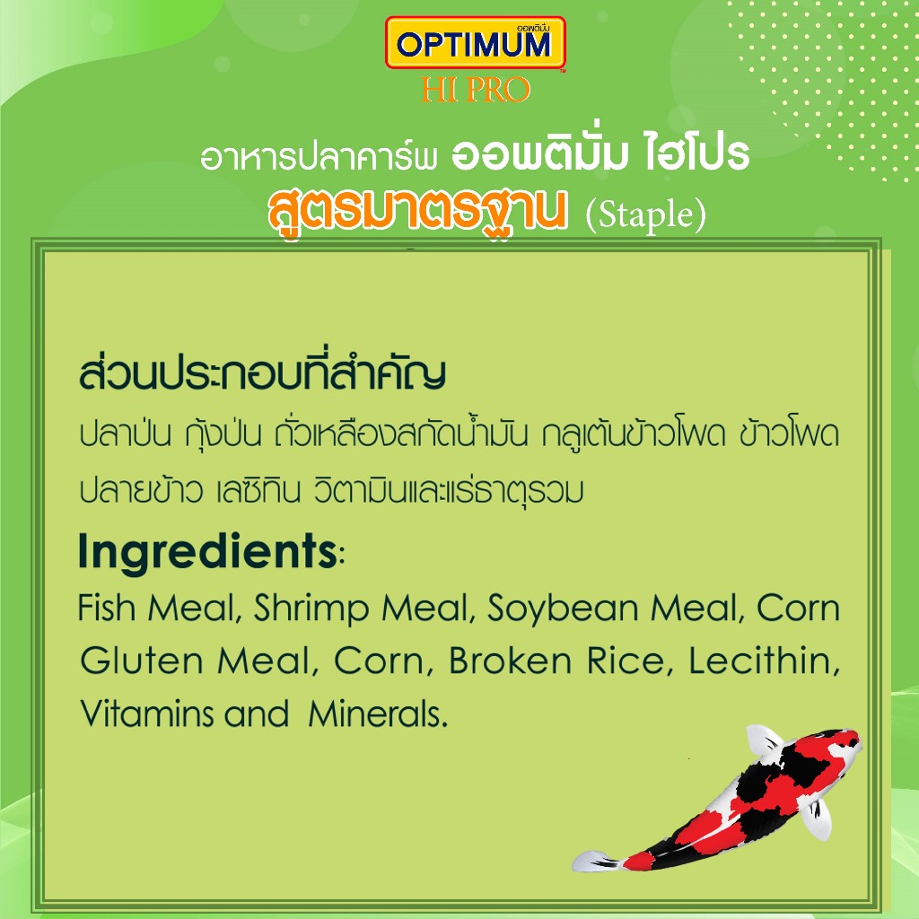 ออพติมั่ม ไฮโปร อาหารปลาคาร์พ สูตรมาตรฐาน ขนาด 15 กก.