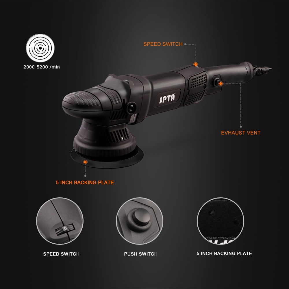 Spta 5inch 780W orbit ring, two actions. เครื่องขัดอัตโนมัติ 15 mm. ขัดบ้าน DIY ขัดเงาแว็กซ์ขัด Kit,2000-5200 รอบต่อนาทีความเร็ว