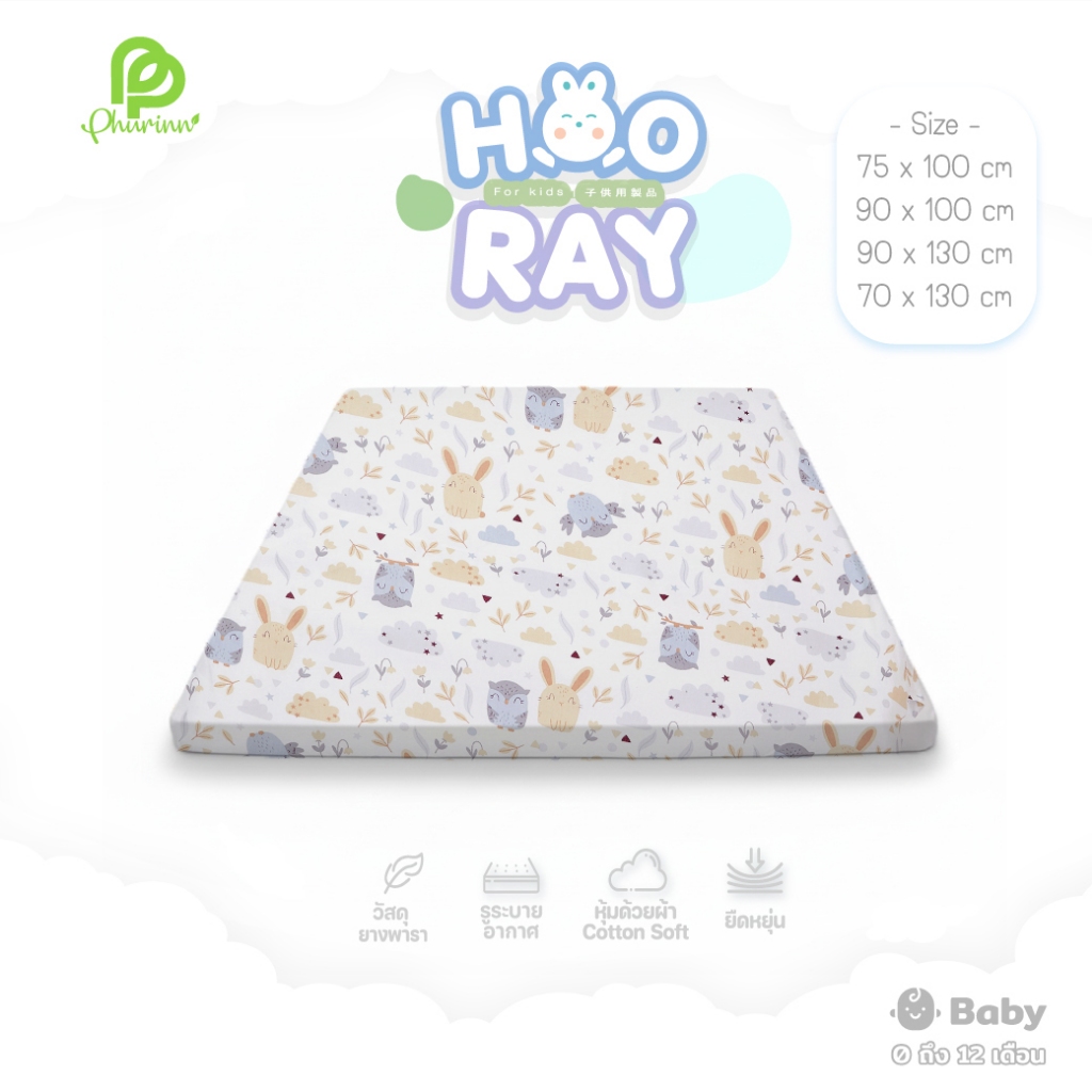 Phurinn baby bed ที่นอนเด็ก ที่นอนยางพาราเด็ก ที่นอนเด็กอ่อน รุ่น Hooray!