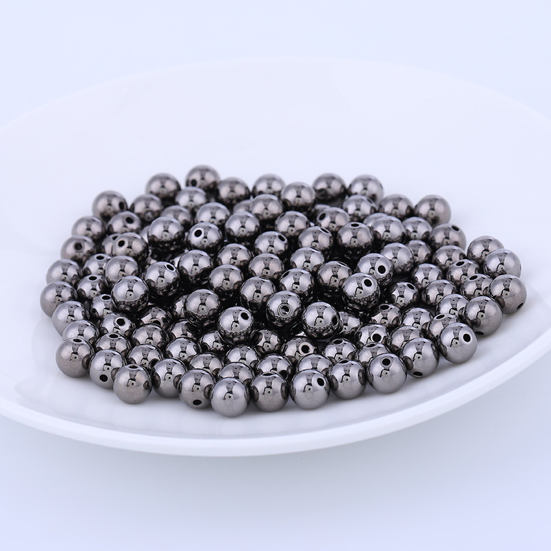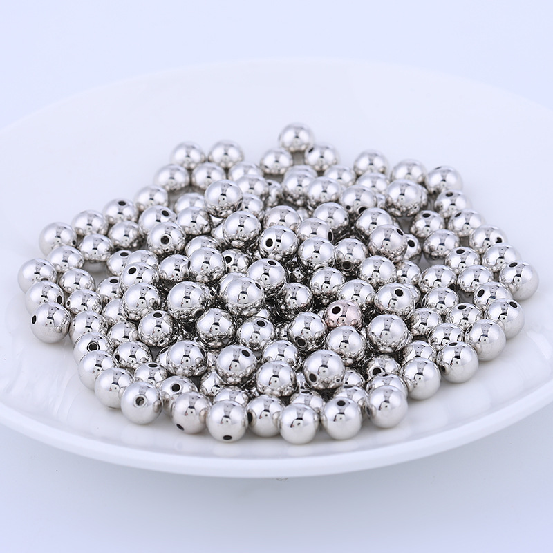Ccb ลูกปัดพลาสติก ชุบไฟฟ้า ทรงกลม รูตรง สีทอง และสีเงิน