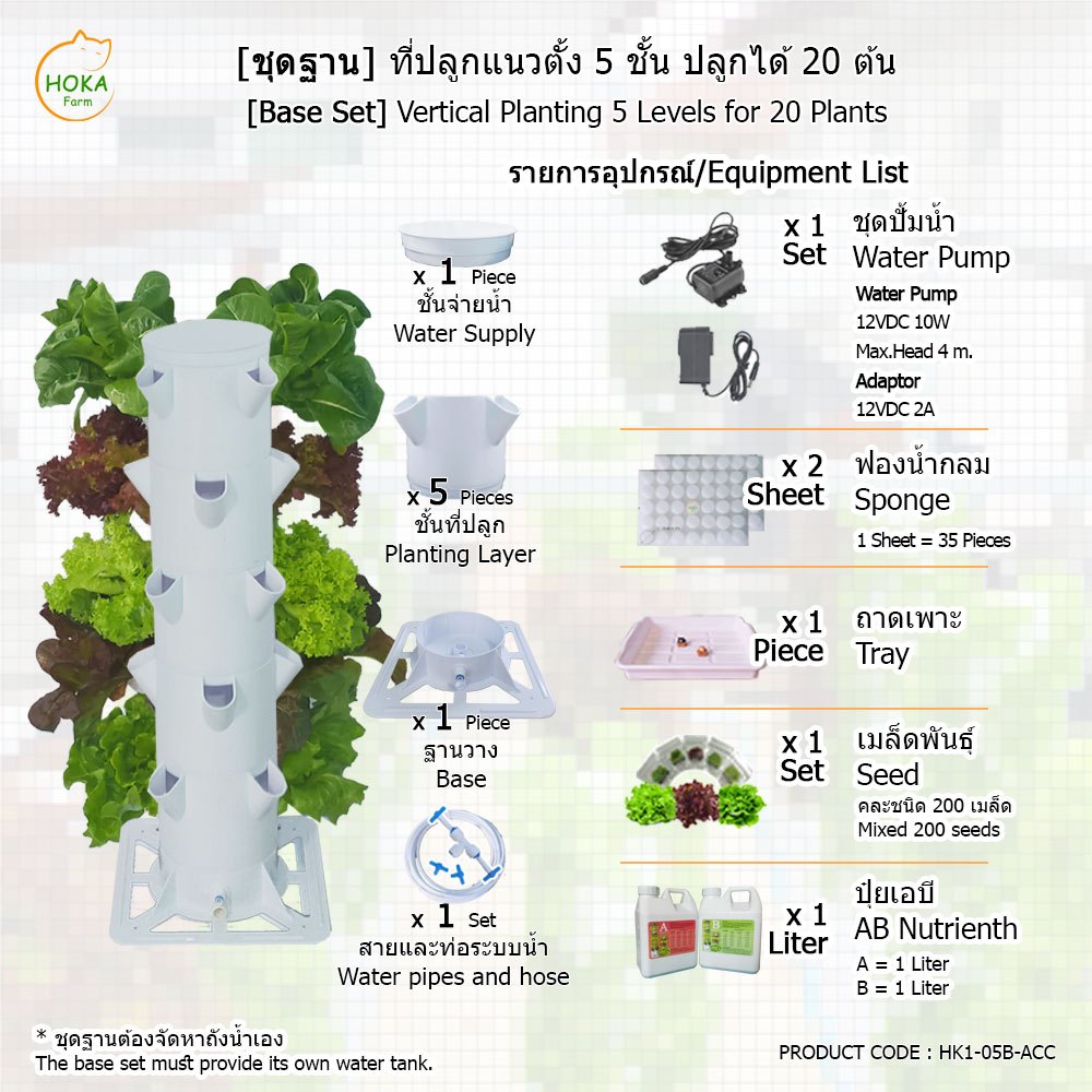 [ชุดฐานวาง ] ชุดปลูกแนวตั้ง 5 ชั้น สำหรับปลูกได้สูงสุด 20 ต้น