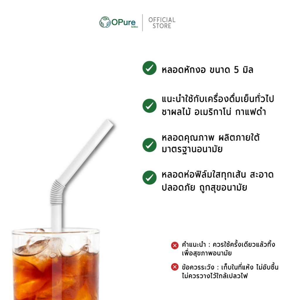(5,000 เส้น) หลอดงอ 5 มิล ยาว 21 ซม. *ห่อฟิล์มใส-ซองกระดาษ หลอดพลาสติกOPure สำหรับเมนูเย็น (ยกลัง)