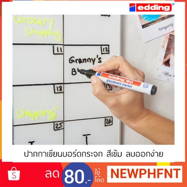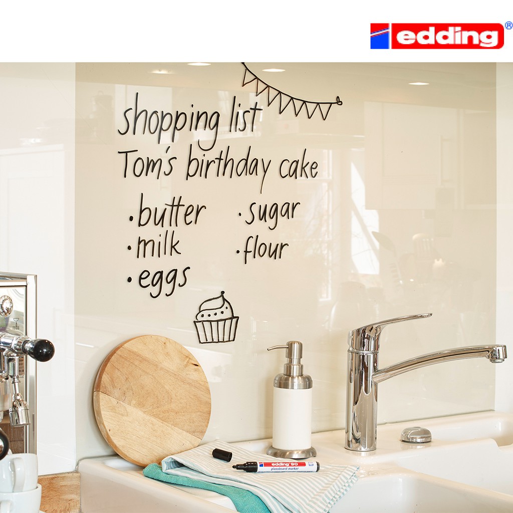 ปากกาเขียนกระจก บอร์ดกระจก สำหรับเขียนโน๊ต ลบออกง่ายด้วยผ้าแห้งหรือแปรงลบกระดานนำเข้าจากเยอรมนี edding 90