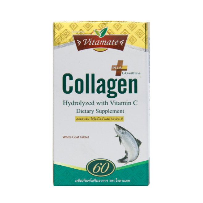 Vitamate Collagen With Vit C & Ornithine ไวตาเมทคอลลาเจน ผสมวิตามินซีและออร์นิทีน ขนาด 60 เม็ด 00948