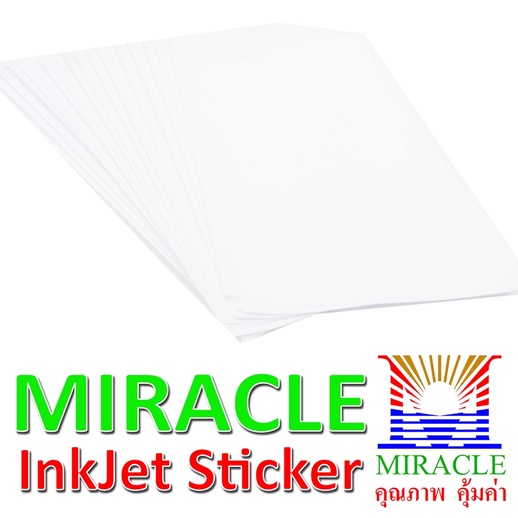 MIRACLE STICKER สติ๊กเกอร์อิงค์เจ็ทกันน้ำ ชนิดกระดาษเนื้อมัน ขาวเงา Photo Sticker หนา 90 แกรม ขนาด A3 บรรจุ 50 แผ่น