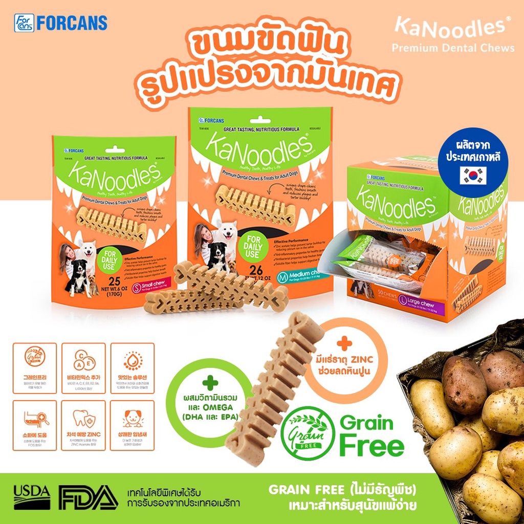 FORCANS Kanoodles ขนมขัดฟันสุนัขเกรนฟรี(มันเทศ) ไม่มีธัญพืช ช่วยลดคราบหิวปูน ผลิตจากประเทศเกาหลี