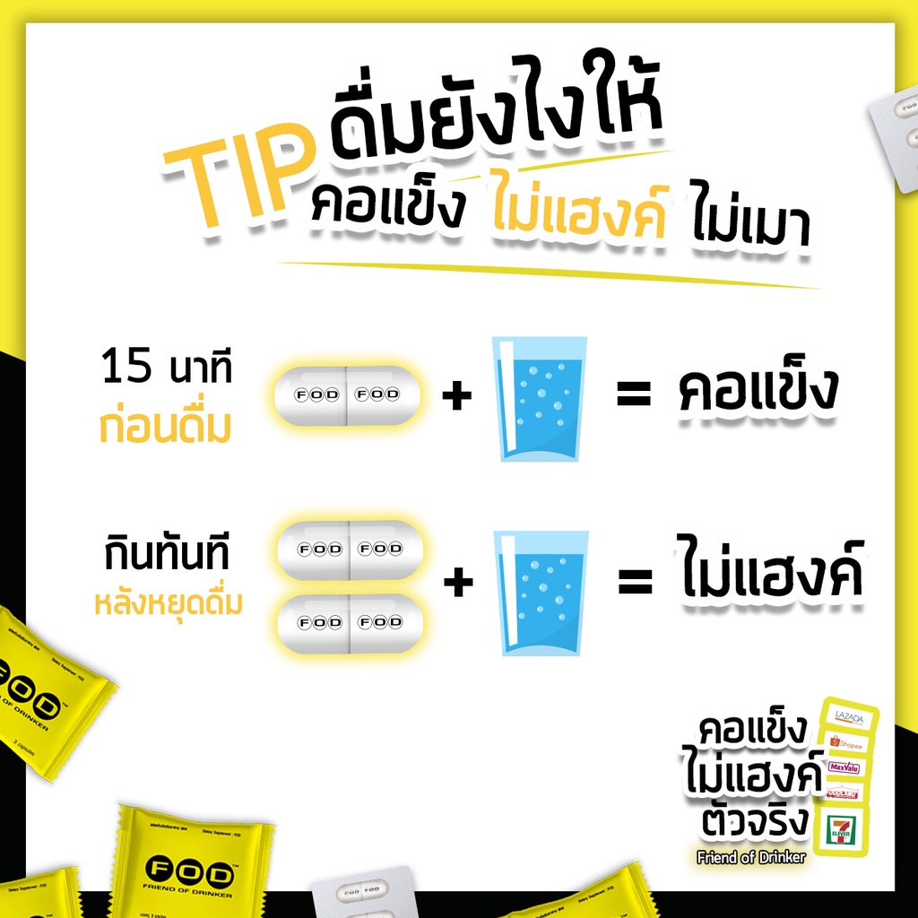 FOD ยาแก้เมา ยาแก้แฮงค์ กินแล้วคอแข็ง ไม่แฮงค์ บำรุงตับ 1 กล่อง (ส่งฟรี)
