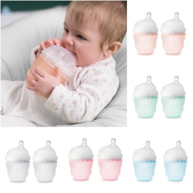 ขวดนมซิลิโคน Olababy ขนาด 4 ออนซ์ แพ็คคู่ (2ขวด) พร้อมจุกสำหรับ 0-3 เดือน