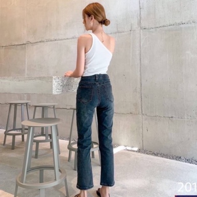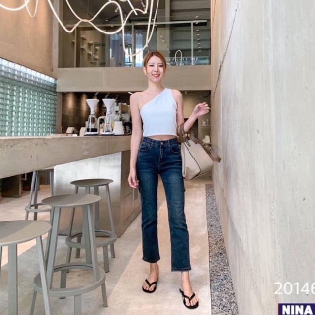 🌈𝑵𝒊𝒏𝒂.𝒋𝒆𝒂𝒏𝒔 #20146 พร้อมส่ง กางเกงยีนส์ผ้ายืดทรงกระบอกตรงเล็กรุ่นนี้ ขาประมาน 9 ส่วน