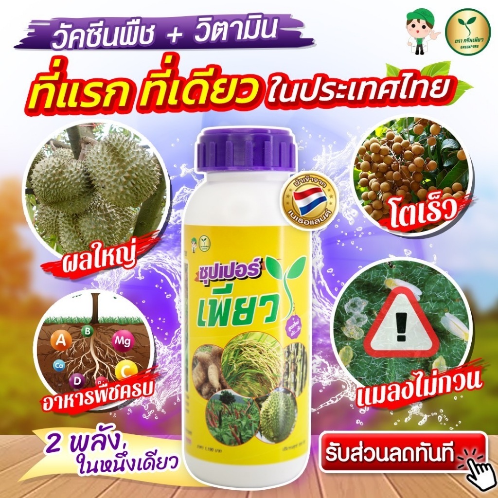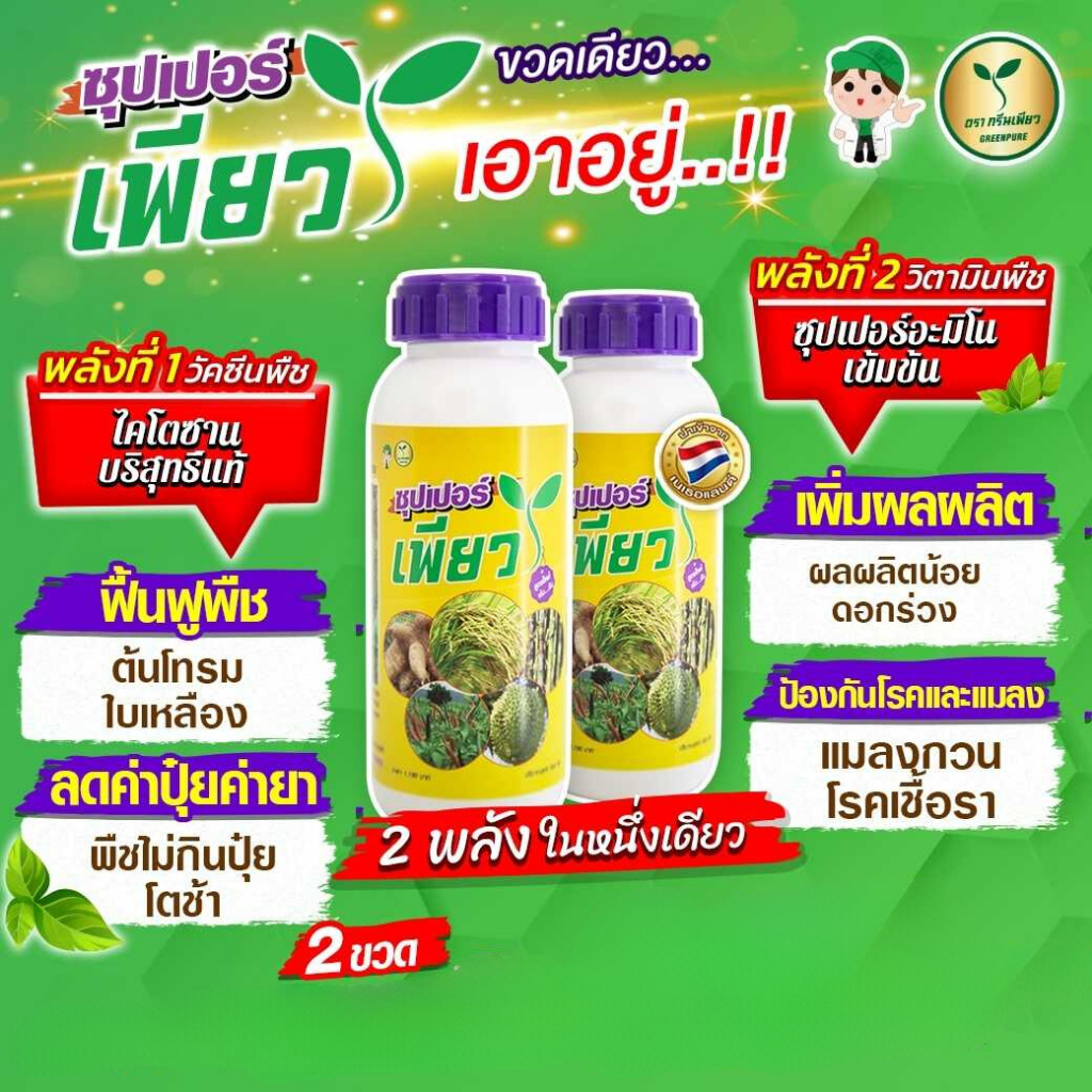 ซุปเปอร์เพียว 2 ขวด (วัคซีน+วิตามินพืช) ใบเขียว โตเร็ว พืชแข็งแรง ไร่โรคแมลง ลดปุ๋ย เกษตรอินทรัย์