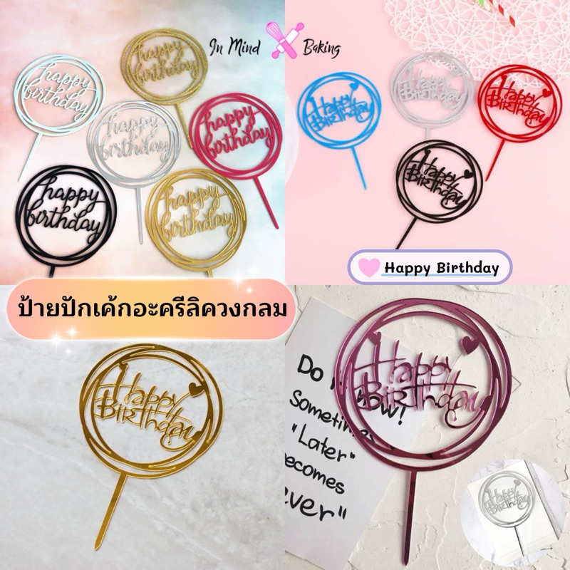 (ขายส่ง) ป้ายHBD อครีลิค วงกลม ปักเค้ก ป้ายวันเกิด