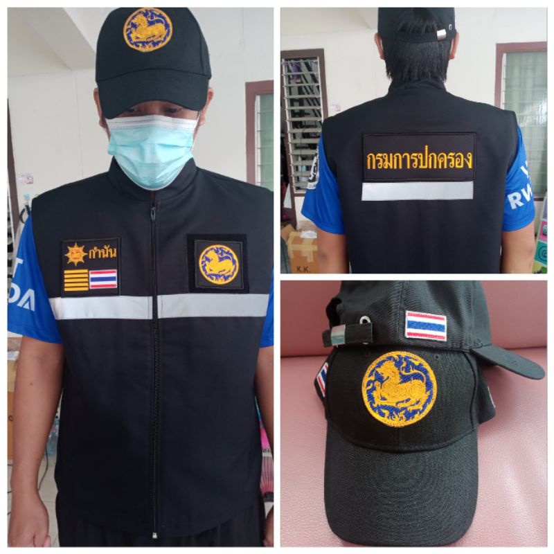 เสื้อกั๊กแบบตีนตุ๊กแก พร้อมหมวก สามารถเลือกอาร์ม ผู้ใหญ่บ้าน ผู้ช่วย กำนัน สารวัตรกำนัน ผรส. แพทย์ประจำตำบล กรมการปกครอง