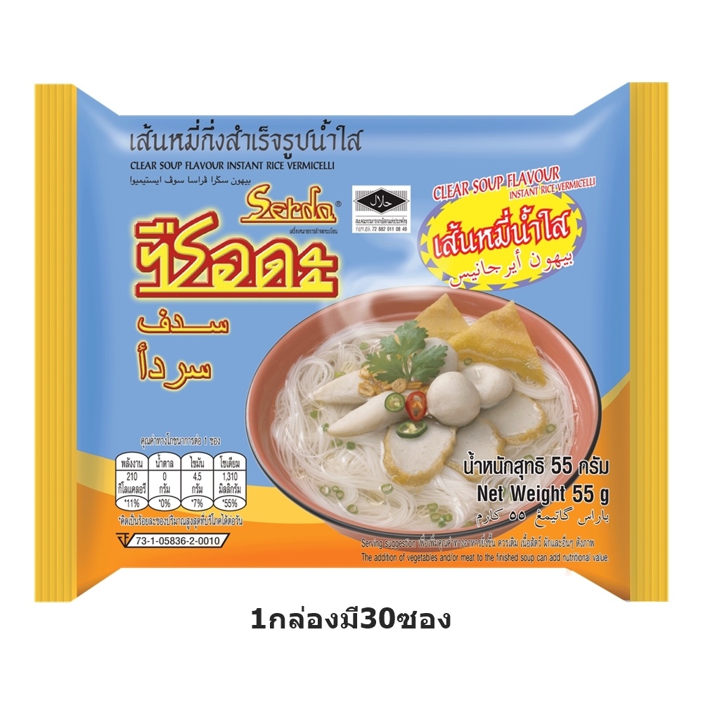 ซือดะ เส้นหมี่กึ่งสำเร็จรูปน้ำใส แบบซอง 1กล่องมี30ซอง