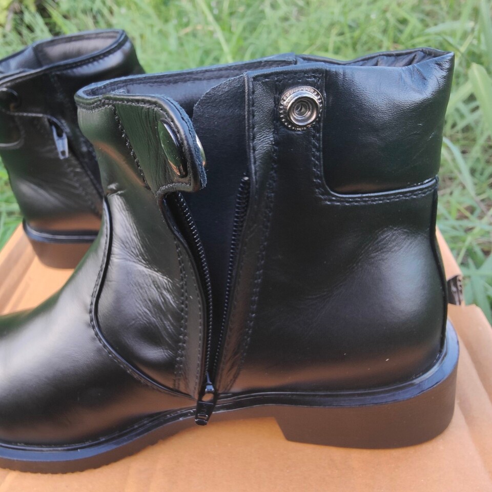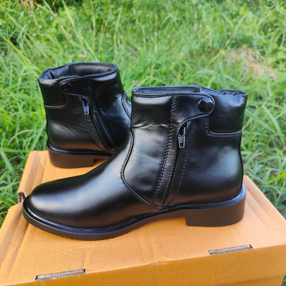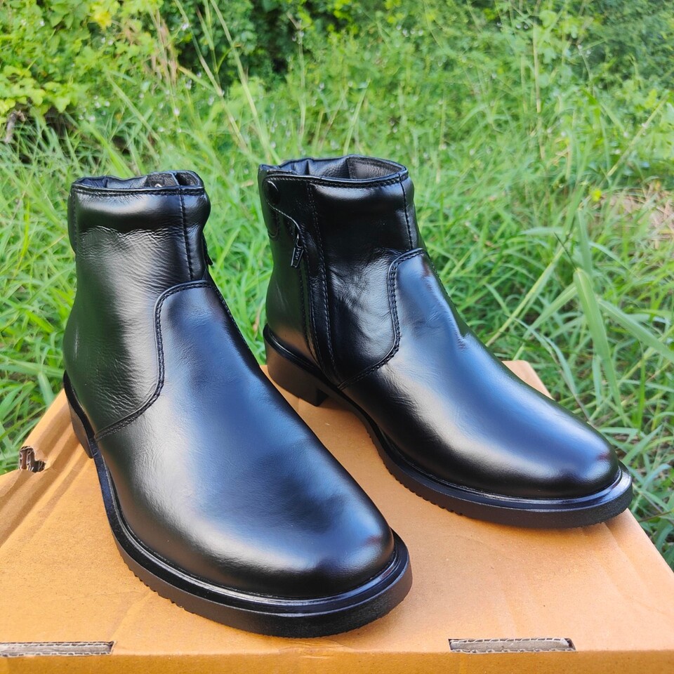 ฮาฟ รหัส 617 ซิปเดี่ยว สูง 5นิ้ว หนังนิ่มขัดเงา หนังวัวแท้ แนะนำ+1ไซซ์