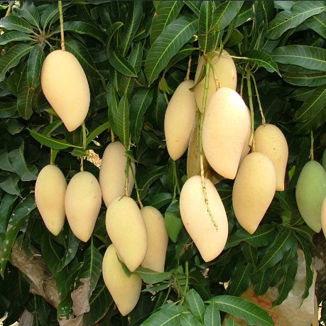 ต้นมะม่วงน้ำดอกไม้สีทอง ขนาด 65-100 ซม.ผิวสวย สีทองอร่าม เนื้อเยอะ รสชาติหวานหอม เมล็ดบางเสี้ยนน้อย