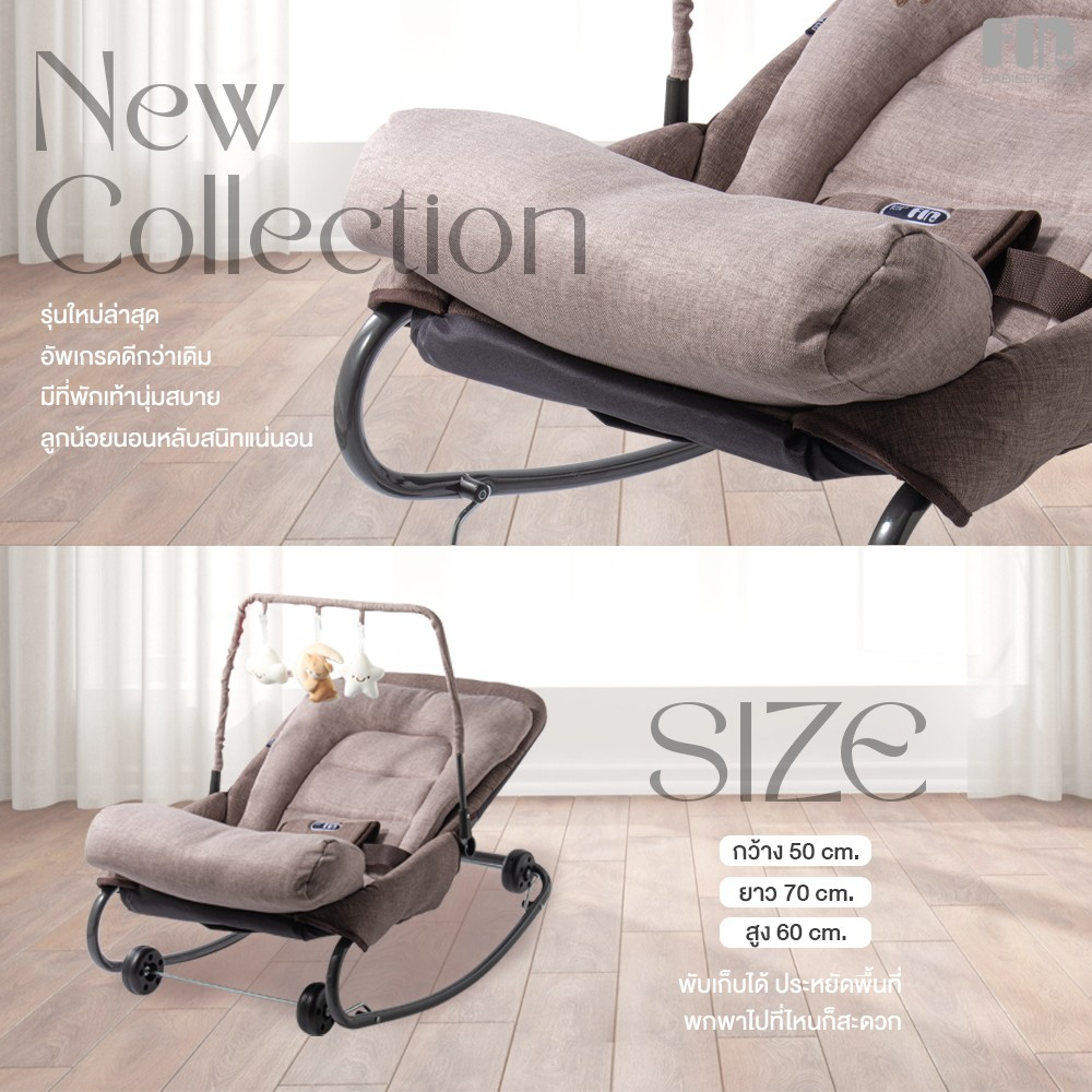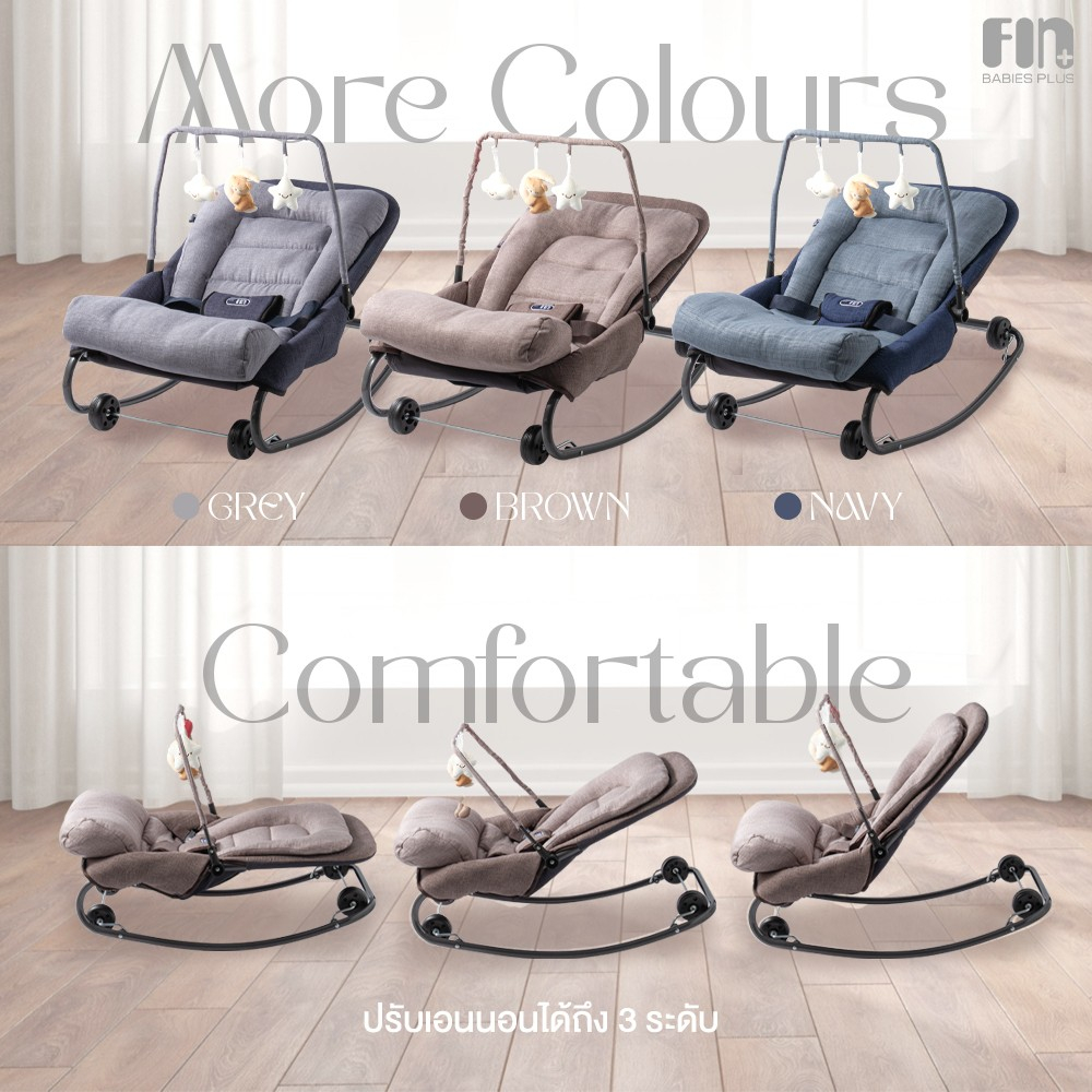 FIN เปลโยกเด็ก รุ่น CAR-RK890 มีโมบายของเล่น ปรับได้ 3 ระดับ นั่ง/เอน/นอน เปลโยก เปลนอนเด็ก ที่นอนเด็ก เปลเด็ก