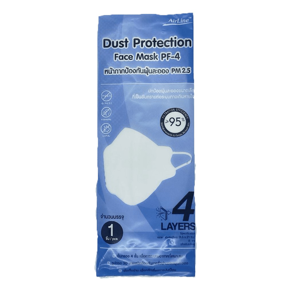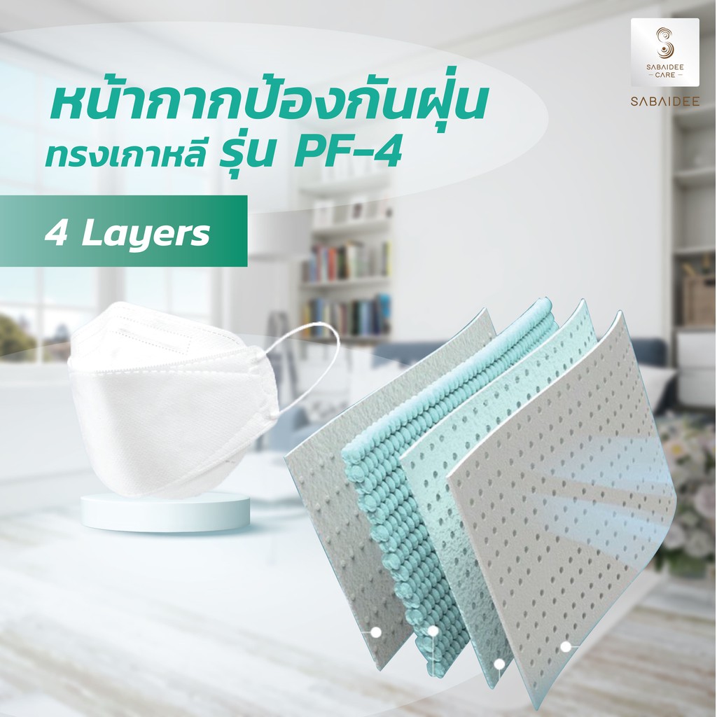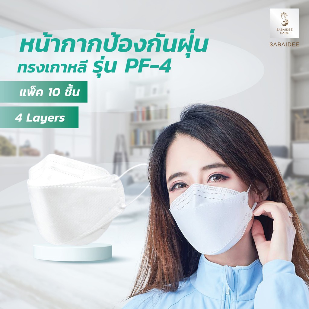 Sabaideecare หน้ากาก PF-4 Mask บรรจุ 1 ชิ้นต่อซอง หน้ากากป้องกันฝุ่นทรงเกาหลี