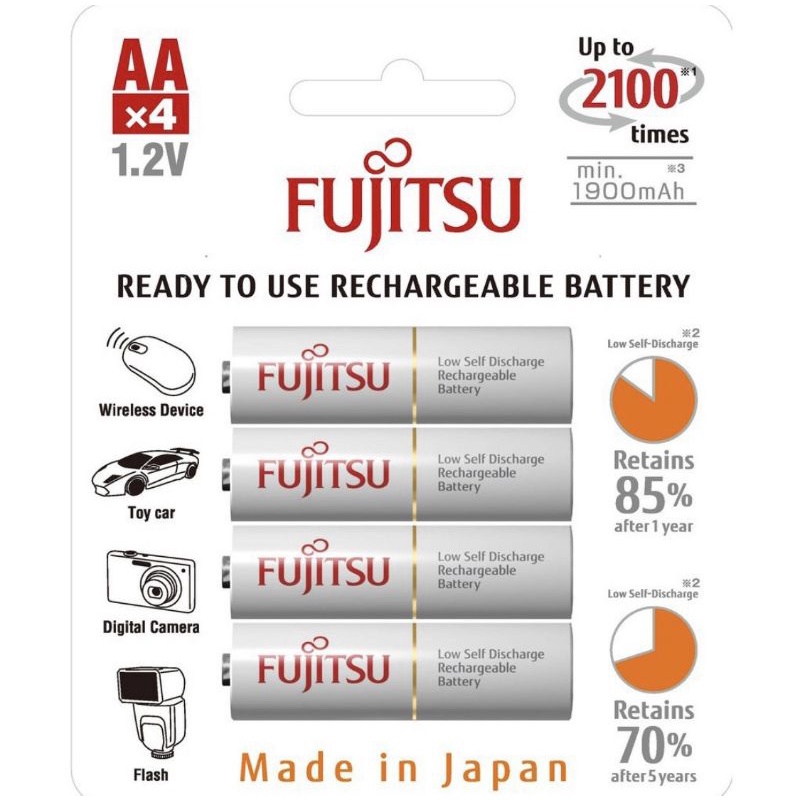 ถ่านชาร์จ Fujitsu ขนาดAA 1.2V แพค4ก้อน ของแท้แถมฟรีกล่องใส่ถ่าน